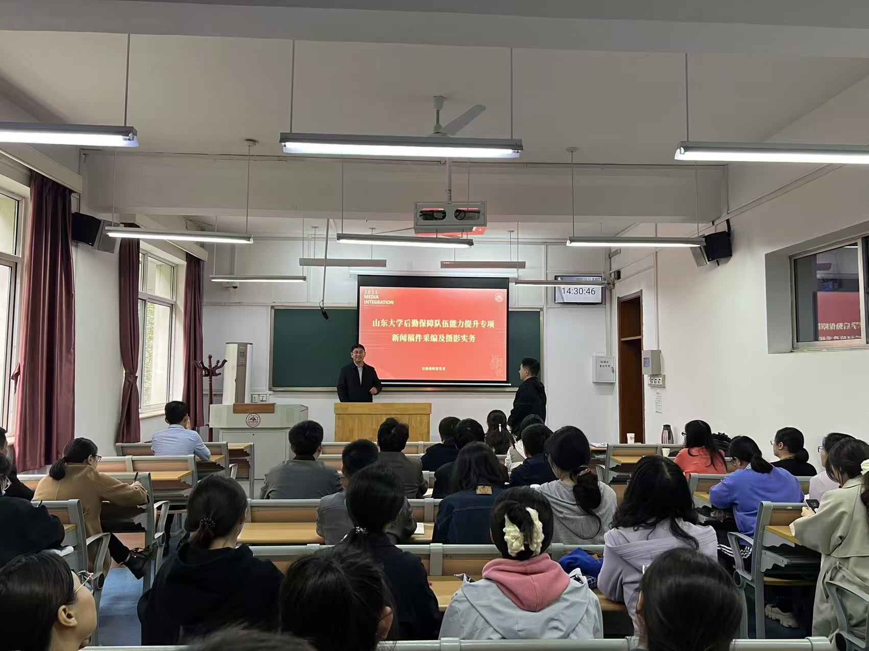 培训中,刘怡康围绕“如何讲好山大故事、融入学校‘大宣传’格局”展开分享。他首先回顾学校近年宣传工作,强调其扎根山大办学土壤、与国家发展同频共振的特点,以及对师生校友先进典型和鲜活故事的挖掘;随后从采编、写作、摄影实务等方面,结合丰富案例讲解打造优秀新闻作品的技巧。学员结合后勤保障实践,与刘怡康进行了深入交流互动。