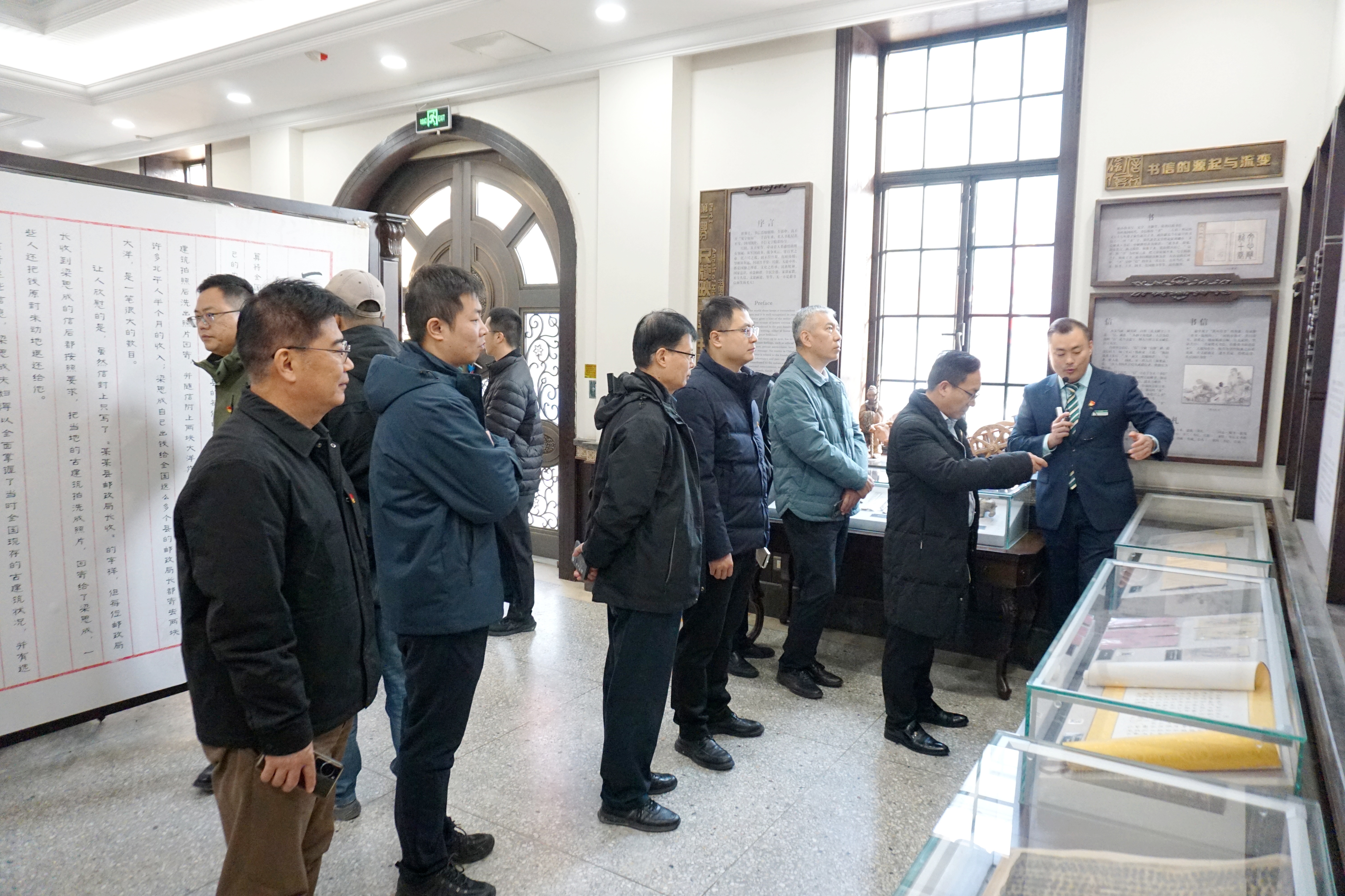 触摸历史温度,传承文化基因。党员们踏入书信文化博物馆,感受到浓厚的历史底蕴。博物馆共有二层,主要藏品以书信为主,保存有梁启超、巴金、宋庆龄等历史名人的书信。党员们仔细端详着每一封信,这些书信不仅承载着一段故事,更展现了中华书信历史文化的源远流长,它们是历史的见证,也是文化传承的载体。一名党员感叹:这些书信使我感受到了先辈们的家国情怀和责任担当,在文化自信的背景下,这次参观无疑是一次生动的文化教育课。通过参观博物馆,党员们深刻认识到传承和弘扬书信文化对于增强民族凝聚力、推动文化创新发展的重要意义。