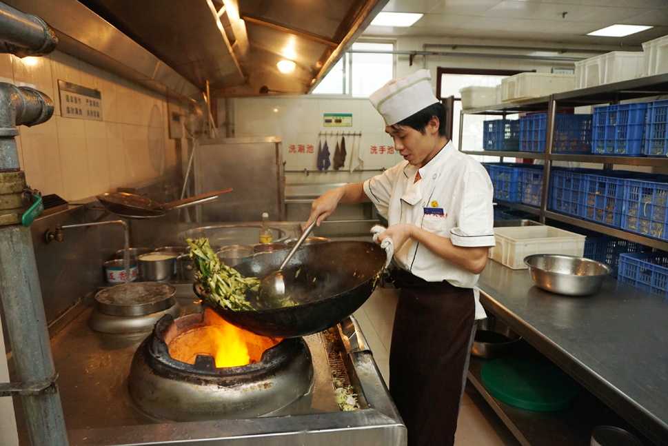 在杏园,并不是所有厨师都能上窗口信息标识的,只有技术高超,爱岗敬业的技术骨干才能荣登上标识单,比如一层共有50多名员工,20个主副食售餐窗口,负责窗口的菜品制作的厨师只有20余名,根据他们所擅长的技术,负责相应的菜品项目,专人专做。