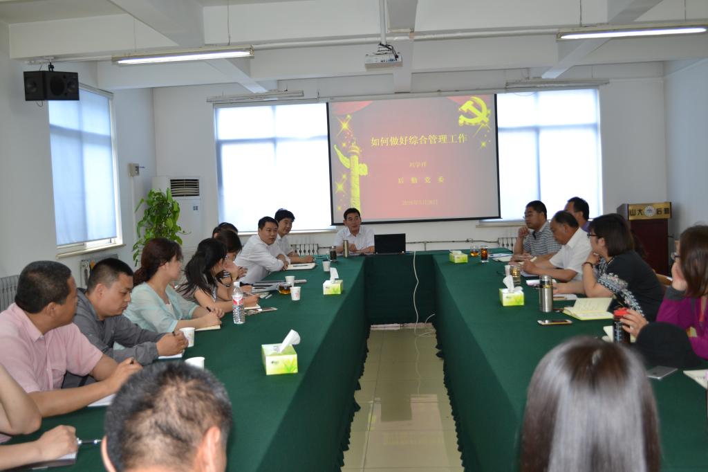 5月26日下午,后勤党委书记刘学祥以《如何做好综合管理工作》为题,对后勤保障部及所属单位综合管理岗位工作人员进行业务培训。后勤党委副书记王景山、崔玉红,副部长罗司军,后勤综合管理办公室全体工作人员,各校区办、各中心从事办公室工作的同志共30人参加了培训。