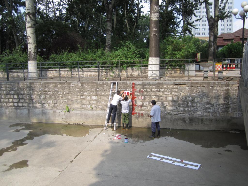 标记泄洪沟水位线和警戒线,便于判断水势,及时组织队伍应急抢险。