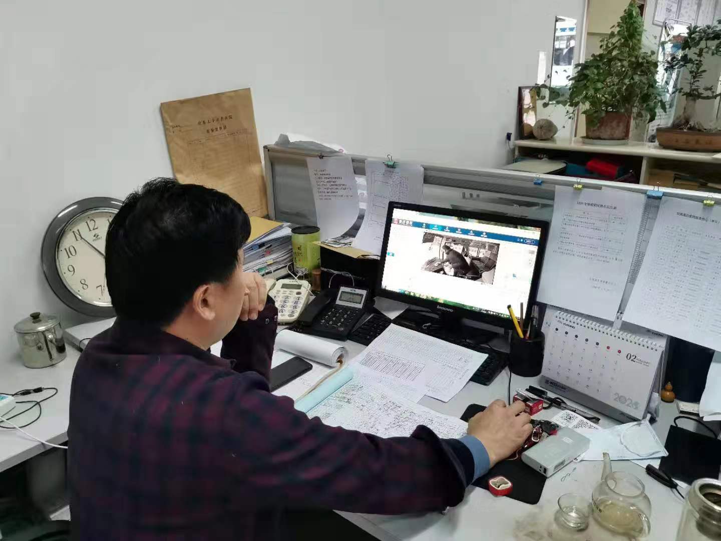交通通讯管理服务中心员工张现党:我是交通通讯管理服务中心的车辆调度员。疫情就是命令,我认真按照中心疫情防控要求,及时把喷壶、消毒液、橡胶手套、口罩等防控物资发放到每一位值班驾驶员。每天24小时坚守在中心调度室,调度校车做好假期班车正常运行,完成学校安排的防疫物资的运输。提前调度驾驶员做好24小时备勤,保障学校重点部门及防控人员通勤等用车需要。通过GPS视频监控实时监督驾驶员做好交通班车车厢内壁、座椅、扶手、仪表台、方向盘等的消毒、通风及乘客打卡、体温测量、乘车人数统计等防控措施的执行。我对学校、后勤、中心疫情防控措施充满信心。