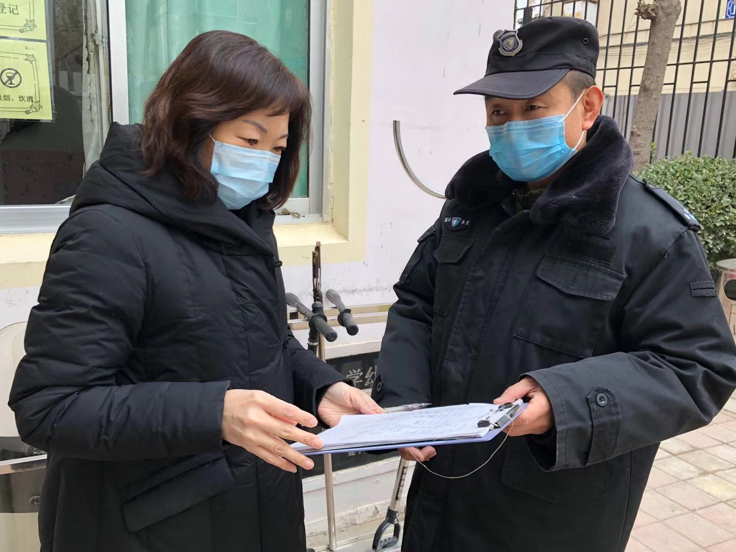 五宿舍家委会主任邓中:我今年九月份就要退休了。现在举国上下紧紧团结在一起,同呼吸,共命运。从小年到年30,从初一到现在,只要疫情一天不解除,我们就一天不放松。口罩是我们的“盾牌”,消杀工具是我们的“武器”,满腔热血是我们的“燃料”。从清晨到深夜,社区门卫是第一道防线,即便因严格的检查标准而被住户质疑,仍耐心解释;消毒人员肩背50多斤的消毒桶,每人平均上下280层楼道打药,构成了第二道防御工事。2天内,社区员工完成了924户入户调查,筛选疫情人员,在心中绘出了一张“战略地图”。社区每天消毒面积35000平方,用药30余升,不留死角。每天完成400余人次体温测试消毒,车辆160辆次检查。疫情当前,责任在肩。没有一个冬天不可逾越,没有一个春天不会来临。鲁迅先生曾有言:“沉着,勇猛,有辨别,不自私”。疫情凶猛之时我们愿坚守岗位,尽最大努力保障社区居民无后顾之忧,只盼冬将尽,春可期,山河无恙,人间皆安!