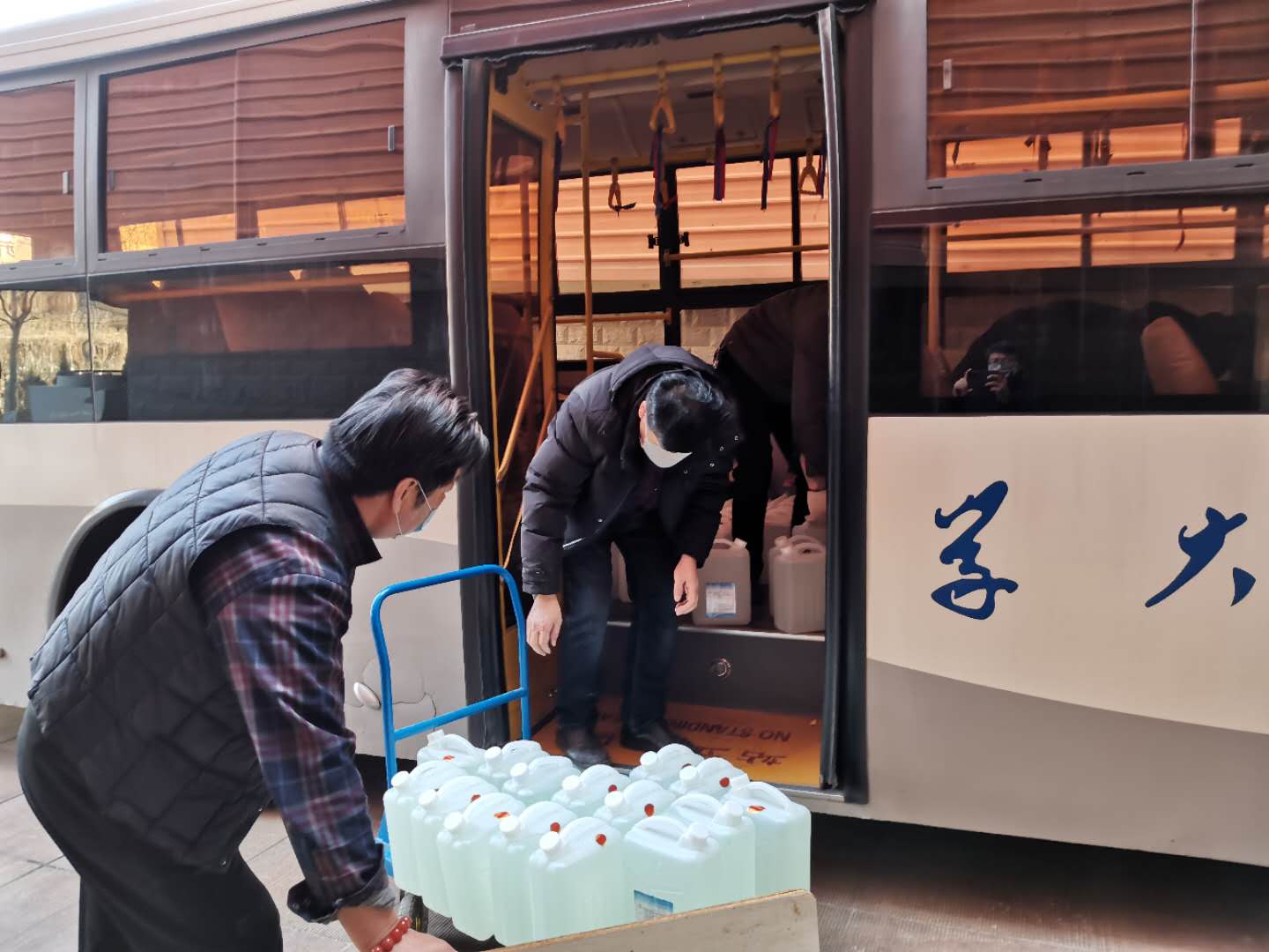 目前,交通通讯管理服务中心已为校办、后勤保障部、卫生健康中心等学校重点防疫部门运送防疫物资近20余台次,把各校区办公场所、学生宿舍、家属宿舍等防疫一线人员所急需的口罩、手套、消毒液、喷洒消毒工具、食品等防疫物资从德州、淄博、潍坊、济宁等多地源源不断的运至我校,同时把青岛校区急需的防疫物资及时送到,全力保障学校防疫工作的顺利开展。