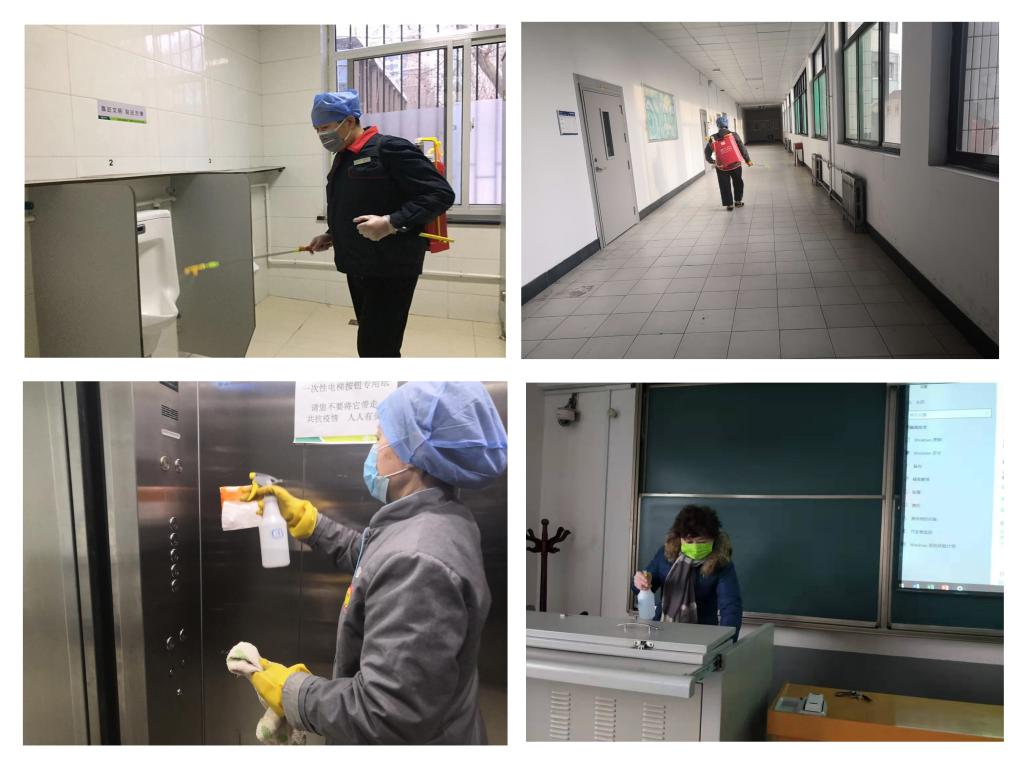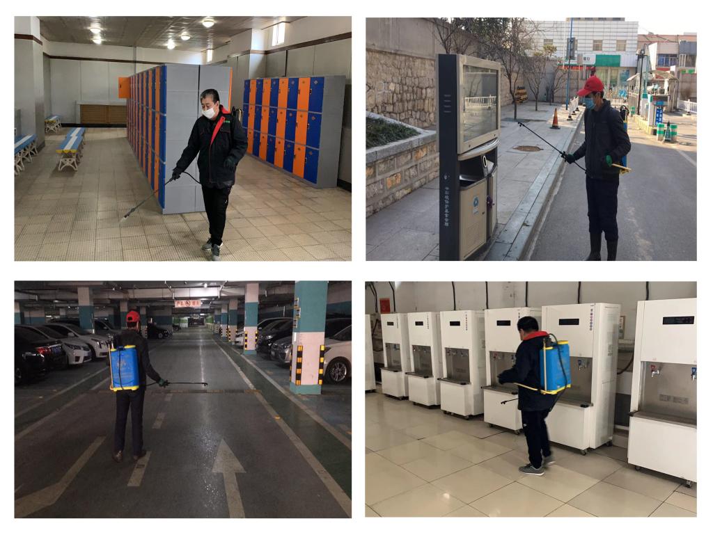 疫情期间项目部每日平均有140人参与消毒工作,通过“分区域、有重点、加频次”的方式,每日定时定点对所有物业管理区域进行消毒工作。重点增加对电梯、卫生间、门把手等区域的清洁消杀频次,尽量采用直接开窗通风,保持楼内空气流通。