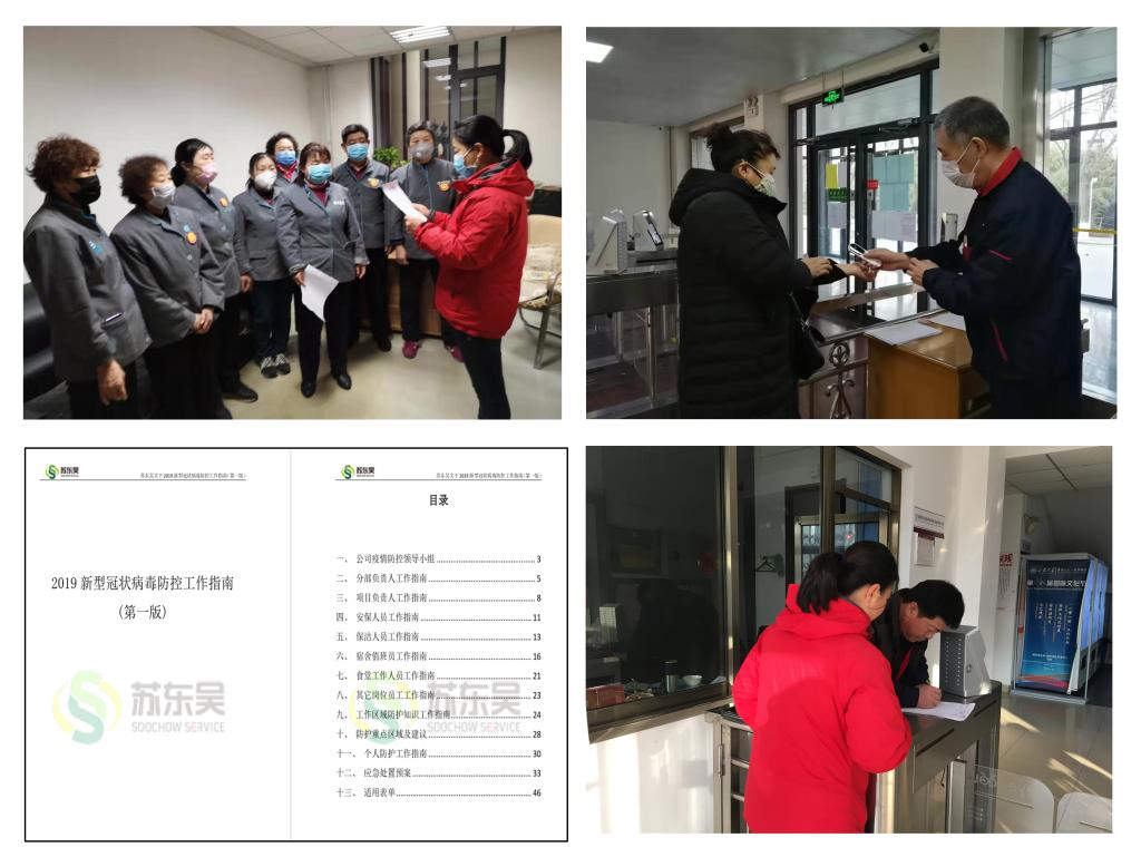 项目部第一时间建立员工健康档案,对在疫情发生地停留过的员工、与疫情发生地人员有亲密接触的员工信息进行报备,并要求隔离观察14天,同时做好登记、追踪、观察等工作,确认无异常后上岗。根据疫情情况调整各岗位人员上下班时间,确保一线工作岗位充足,保障服务工作不间断。制定《新型冠状病毒防控工作指南》,同时针对疫情的特性、药剂及工具的使用、自我防护等知识,对员工进行培训。