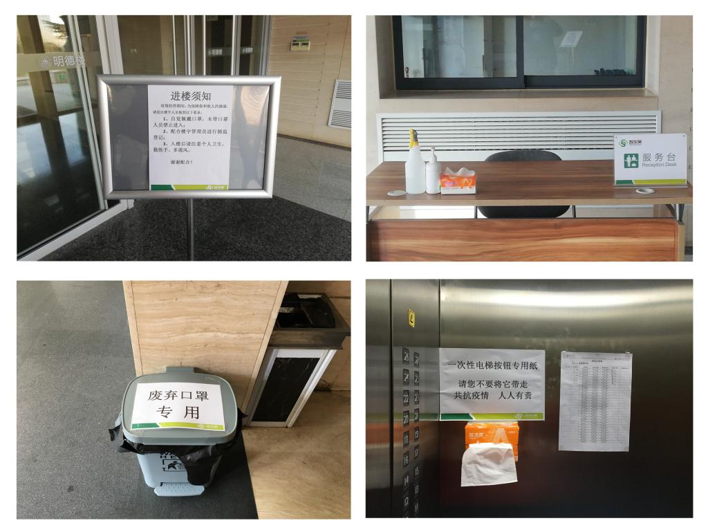 针对楼内的管控做好各类提醒标示和温馨提示,并对工作人员及外来办事人员针对疫情预防进行多种方式的宣传普及,增强大家的防范意识。电梯内外放置抽纸、张贴温馨提示,在楼内设置废弃口罩专用垃圾桶,由专人每天参照医疗垃圾统一收集处置,关心每一处细节,引导师生做好自身防护工作。