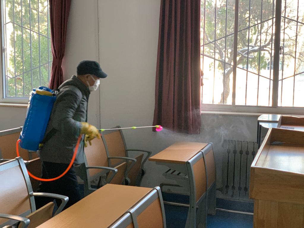 217日上午,中心校区管理办公室首先开展教学楼消杀工作演练,其他各校区进行现场观摩。卫生与健康中心主任赵增科,后勤保障部部长殷录民,副部长罗司军、彭恒军参加现场消杀演练。