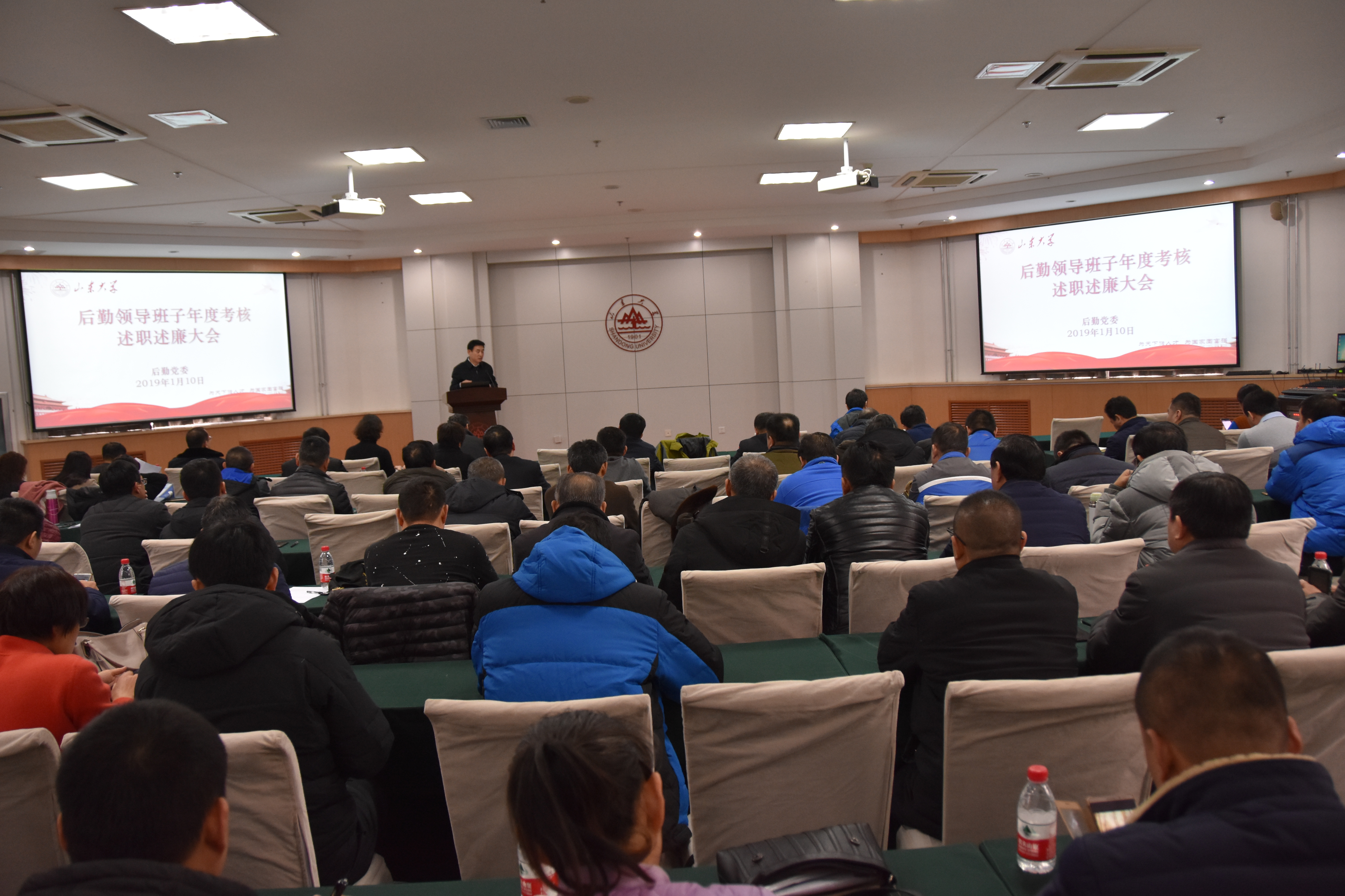 1月10日,根据学校党委工作部署,后勤党委、后勤保障部召开2018年度后勤领导班子及领导人员述职述廉考核测评大会,后勤党委书记刘学祥主持会议。