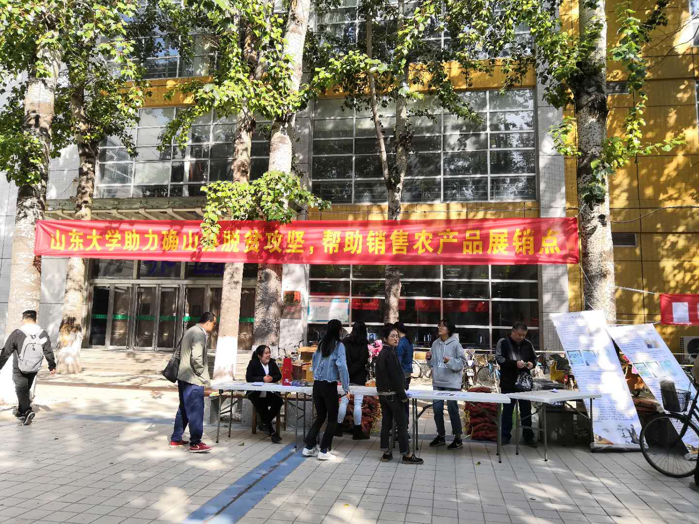 10月17日为国家扶贫日,为更好地落实学校定点扶贫工作任务,助力确山县脱贫攻坚,学校联合财务部、团委、后勤保障部中心校区管理办公室组织了帮助确山县名优农产品销售活动。