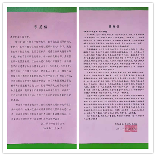 信里这样写道:“老师们以全部的爱心和耐心对待孩子,将孩子的情感需求放在首位,不计得失,不怕辛苦”,“每晚都会给家长发布手工和视频,鼓励家长们带领孩子共享亲子时光”,“时间一天天过去,我们看到的是孩子已经融入了集体的快乐和洋溢着喜悦自信的笑脸”.........字里行间不仅体现出教师辛勤的付出与浓浓的爱心,而且,更深深表达了家长对幼儿园工作的信任与支持。幼儿园、老师、家长用爱心架起了家园共育的桥梁,为我们拥有山大幼教的优质品牌而自豪!