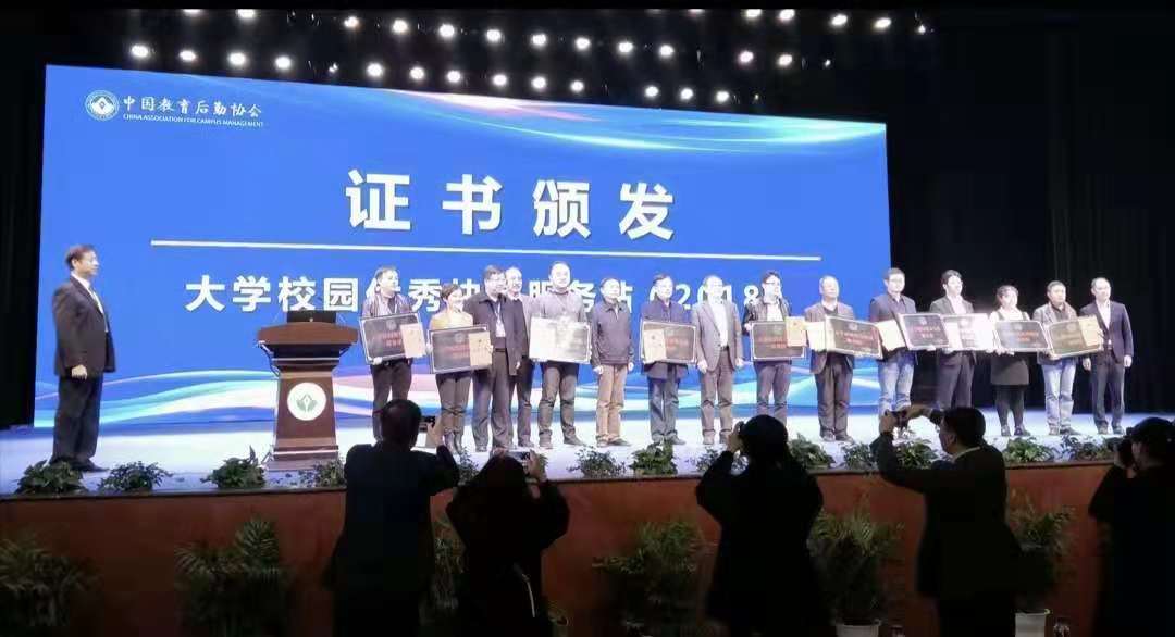 刘学祥作为山东省学校后勤协会秘书长在嘉宾专题论坛阶段,就如何进一步推进《校园快递服务站建设与服务规范》团体标准的贯彻落实;如何加快校园快递站点建设中校外和校内两方需共同努力解决的问题,结合我校的一些做法进行了经验介绍与分享。会上,中国教育后勤协会为获得“大学校园优秀快递服务站(2018)”荣誉称号的全国10所高校举行颁奖典礼,王奉合代表学校上台领取获奖证书。