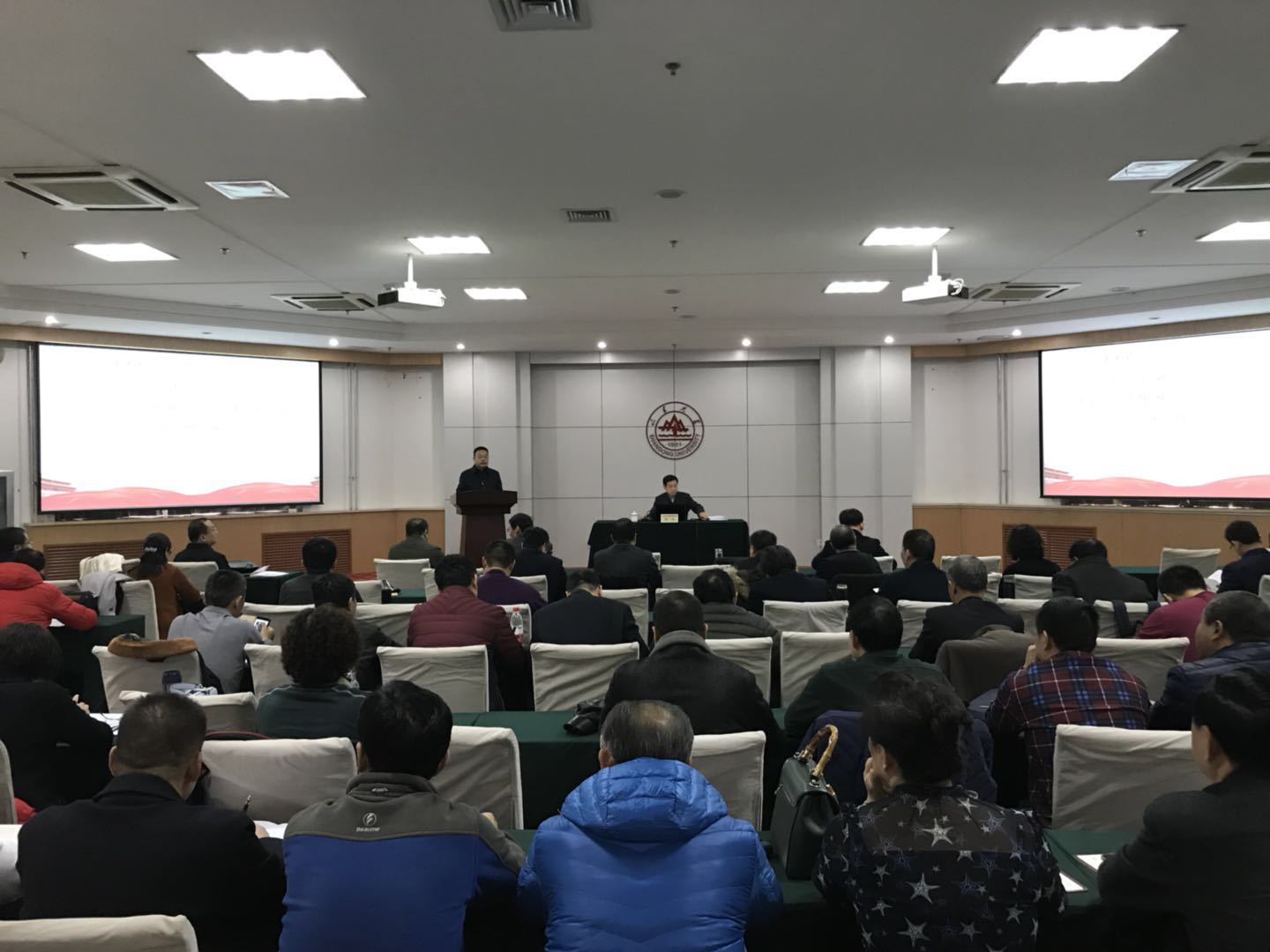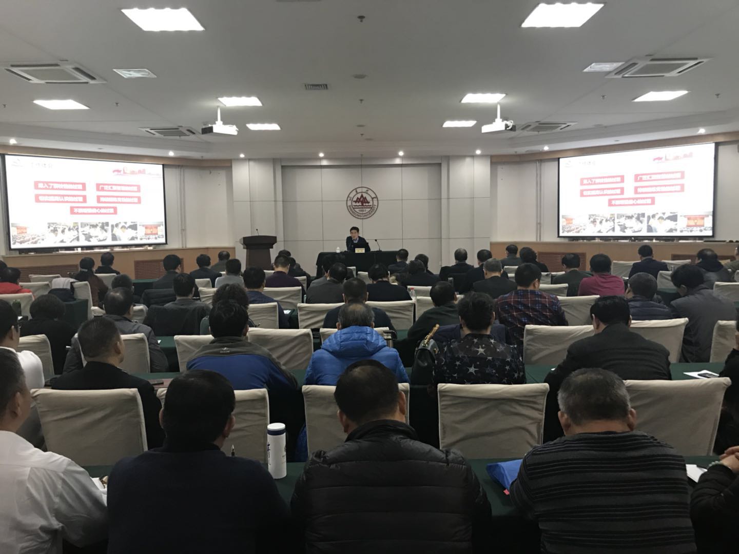 为深入学习贯彻中共山东大学第十四次党代会精神,根据后勤骨干研修班安排,12月1日上午,后勤党委在明德楼工会厅举办管理骨干研修班,特邀请山东大学党委、校长办公室副主任,政策研究室主任梅强做《追求卓越,只争朝夕,奋力开创中国特色世界一流大学建设新局面》专题报告。后勤保障部部长殷录民主持报告会。后勤科级以上干部、党支部委员等后勤骨干近一百人参加学习培训。
