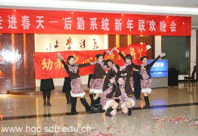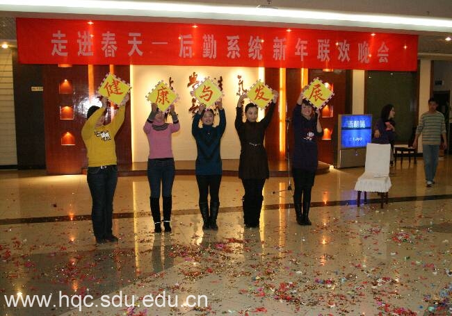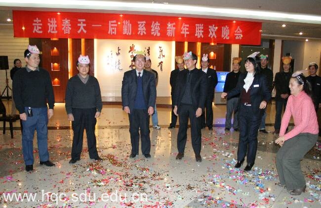 12月30日晚,走进春天——后勤系统新年联欢晚会在新校综合服务楼四层隆重举行。校工会副主席胡建国等工会领导,后勤管理处处长张宇、后勤党委书记李旭新等后勤党政领导出席联欢会。 联欢会上,张宇致词并向辛勤耕耘在后勤各个工作岗位上的全体同事及家人表示亲切慰问并致以美好的新年祝福。他讲到,过去的一年里,在学校领导的关心、指导下,在学校各兄弟单位的配合、支持下,经过全体后勤人的共同努力,后勤系统顺利完成了年度各项任务,实现了既定目标,取得了可喜的成绩,概括起来有以下特点:一是运转基本平稳,实现良好开端;二是管理趋于规范,制度体系正在完善;三是生产文明,预防到位;四是反腐倡廉长效机制建设稳步推进,阳光后勤、廉洁后勤初见端倪;五是文化建设卓有成效,和谐文化彰显诱人魅力;六是关注民生,赢得些许赞誉。他还满怀信心地对后勤2009年工作进行了展望,表示全体后勤人将在学校党政的坚强领导和兄弟部门的大力支持下,携手并肩,共同开创新的辉煌! 晚会在幼教发展中心带来的开场舞中拉开了序幕。舞蹈《开门红》、《糖果》、《太极扇》、《爱情鸟》等精彩节目赢得了观众的阵阵掌声。小品《选拔主持人》、《我是幼儿教师》等节目同样赢得了大家的阵阵喝彩。游戏《善解人意》、《动物大连蹲》、《吹蜡烛》等互动节目更是将晚会掀起阵阵高潮。此次联欢晚会充分展示了后勤系统职工的拼搏向上、积极进取、爱岗敬业的精神风貌,丰富了后勤系统职工的业余文化生活,增强了后勤系统的向心力、凝聚力。后勤系统200余名职工参加了联欢晚会。