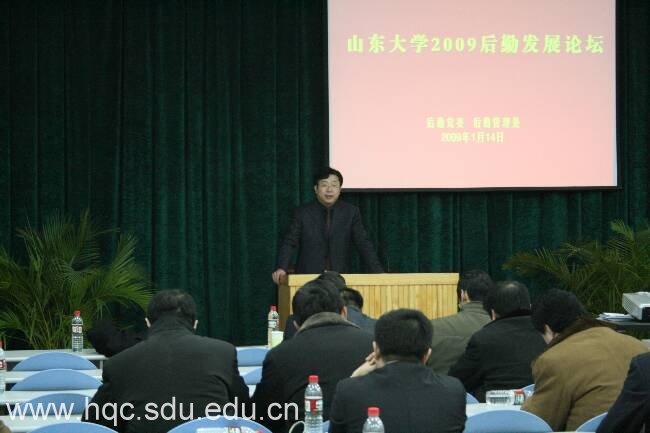 1月14日上午,后勤党委、后勤管理处在东区新校18#二层第三报告厅召开山东大学2009后勤发展论坛,谋划后勤发展。后勤管理处处长张宇主持了论坛并讲话,后勤系统副科级以上管理人员90余人参会。 论坛上,后勤部分领导和中心负责人分别结合实际工作探讨了后勤非事编用工、改革收入分配制度、校园勤工试点、节能降耗、住宅区推行物业管理、校园楼宇中心运行模式、完善质量体系建设、学生伙食物资采购供应模式、幼教中心管理模式等问题。 张宇点评了每个研讨题目,肯定了每位报告人对后勤工作的现状分析、规律探索和发展展望。他强调,工作的创新来源于对工作实际情况和工作规律的把握,这都需要不断学习、研究,每一个人都需要不断学习新的工作方法,把握新的工作规律。他还从研讨交流的过程是提高认识、统一思想的过程,是了解情况、掌握规律的过程,是总结经验、明确方向的过程,是学习提高、提升能力的过程,是积累共识、集中智慧的过程,是树立信心、凝聚力量的过程等方面总结了研讨会的经验。他希望后勤系统的干部要注重学习,特别是年轻干部要善于根据自己的工作进行学习、总结和提升,希望每一位同志都能做学习的模范、做研究的模范、做创新的模范,使后勤的工作再上新的台阶。