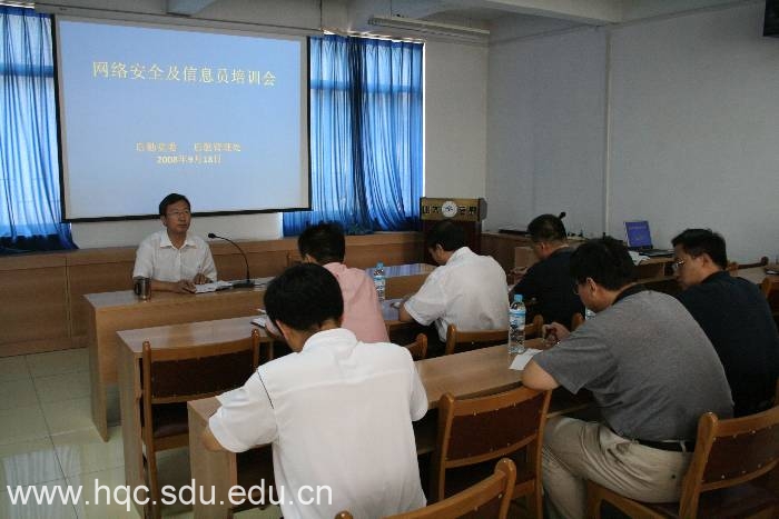 9月18日上午,后勤处在后勤二楼会议室组织召开了网络安全及信息员培训工作会。后勤党委书记李旭新、副书记杨汝元、后勤管理处副处长殷录民及后勤各支部书记、宣传委员和通讯员30余人参加了会议。 会上,山东大学新闻中心总编室副主任白向忠作了题为《宣传报道工作经验交流》专题报告。报告中,白向忠从新闻稿件写作的意义,新闻稿件的写作与修改,新闻图片的拍摄与处理等几个专题,结合具体的写作实例为大家做了精彩的报告,使大家对新闻写作的基本知识和常识,新闻写作必须掌握的重点和要领,有了更进一步的了解,对宣传委员和通讯员在今后实际通讯报道和宣传工作中,如何更好地提高稿件质量,发挥新闻宣传的舆论导向作用,报道后勤工作,树立后勤形象,促进后勤各项工作的发展,起到一定的指导作用。 李旭新就后勤网络安全工作和宣传工作提出如下要求:一、要充分认识加强后勤网络安全工作和宣传工作的重要意义,牢牢把握宣传工作的舆论导向,增强做好后勤宣传工作的责任感和使命感。二、要把握机遇、紧紧结合“人才年”建设,突出重点,改进方法,努力提高宣传的效率和效益;三、健全制度,严格纪律,优化程序,使后勤网络宣传工作更加制度化和规范化;四、进一步拓展宣传阵地,搞好策划,加大新闻宣传的力度,强化后勤宣传工作课题研究,不断提升后勤网络宣传工作的水平。 杨汝元传达了《山东大学校园网安全管理实施办法》等有关文件精神,并宣读了《后勤网络安全与建设暂行规定》。殷录民通报了后勤网页的改版情况,并要求后勤各单位在网站建设方面做到:合法建网,简捷明快,增强功能,注重实效。