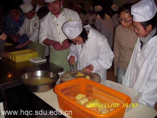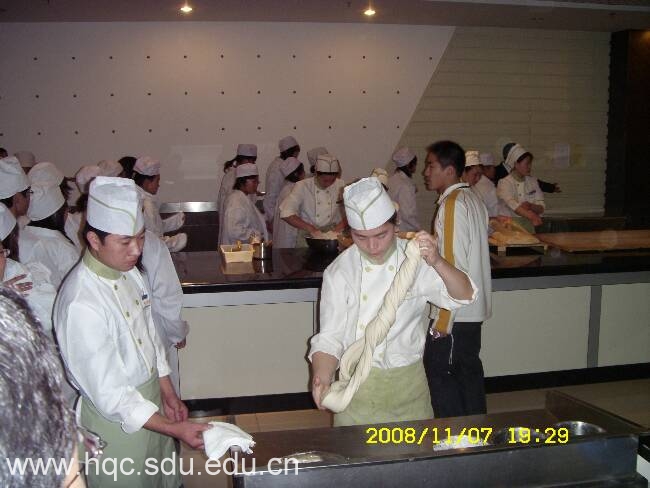 11月7日,饮食管理服务中心与校学生会在东校区新校综合服务楼组织学生参观食堂生产加工流程、后厨管理,观摩、体验厨师加工制作主副食产品过程和技术,开展“走进食堂”活动。 7日下午4:30,在饮食中心党支部书记徐健和餐饮一部各级管理人员的引导下,来自东校区新校各学院的72名学生代表参观了综合楼食堂肉类集中加工间、水产品集中加工间、蔬菜初加工流水线、米饭生产线、馒头加工制作流水线、烹调间、主食花样间、主副食仓库和餐具洗消间等食品加工处理区。 徐健向同学们详细介绍了学生食堂的基本情况、原材料采购、存储和食品加工制作、出售的工作流程及标准要求,并对同学们提出的问题作了一一解答。参观活动历时近2小时,同学们对食堂在食品卫生安全管理、标准化质量管理、员工队伍管理等方面的规范操作有了全面深入的了解;对食堂实行伙食物资集中采购存储统一供应、餐用具集中洗消统一配用、主副食集中加工统一配送的专业化生产运作模式,发挥规模效益,降低伙食成本的措施给予了充分肯定。 7日晚19:00,在综合楼四层一多餐厅,110余名学生观摩了来自综合楼5个食堂近30名厨师现场刀工切配、面食制作、菜品烹饪技艺展示。在观看厨师现场制作20余种主副食产品的过程中,同学们也认真请教并亲手制作了南瓜馒头,刀削面,馄饨、柳叶包等面食,体验了土豆丝、鱿鱼打花刀、蓑衣黄瓜等切配方法。活动中,同学们还对烹饪菜品进行了书面评价,并与食堂管理人员和厨师进行了面对面的交流,提出了许多宝贵的意见和建议。 活动于晚21:00结束,同学们对食堂员工为做好饮食服务保障工作付出的辛勤劳动致以感谢。餐饮一部各级管理人员表示要以不断满足学生生活需求为目标,进一步提升服务水平,也希望同学们继续监督食堂工作并提出意见和建议。
