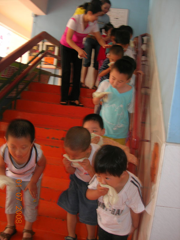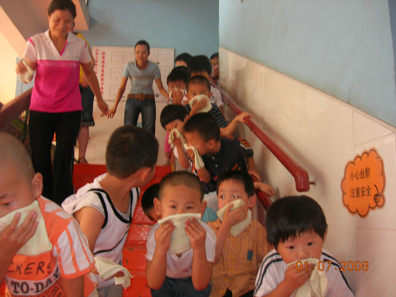 7月1日下午,第三幼儿园组织了全园消防演习活动。随着哨子的阵阵长鸣,全体教师和幼儿开始执行第一套《幼儿园消防疏散预案》。教师听到演习信号,立即组织各班幼儿有秩序的进行疏散,孩子们用毛巾捂住口鼻,在教师的带领下按疏散通道迅速撤离到安全地带。