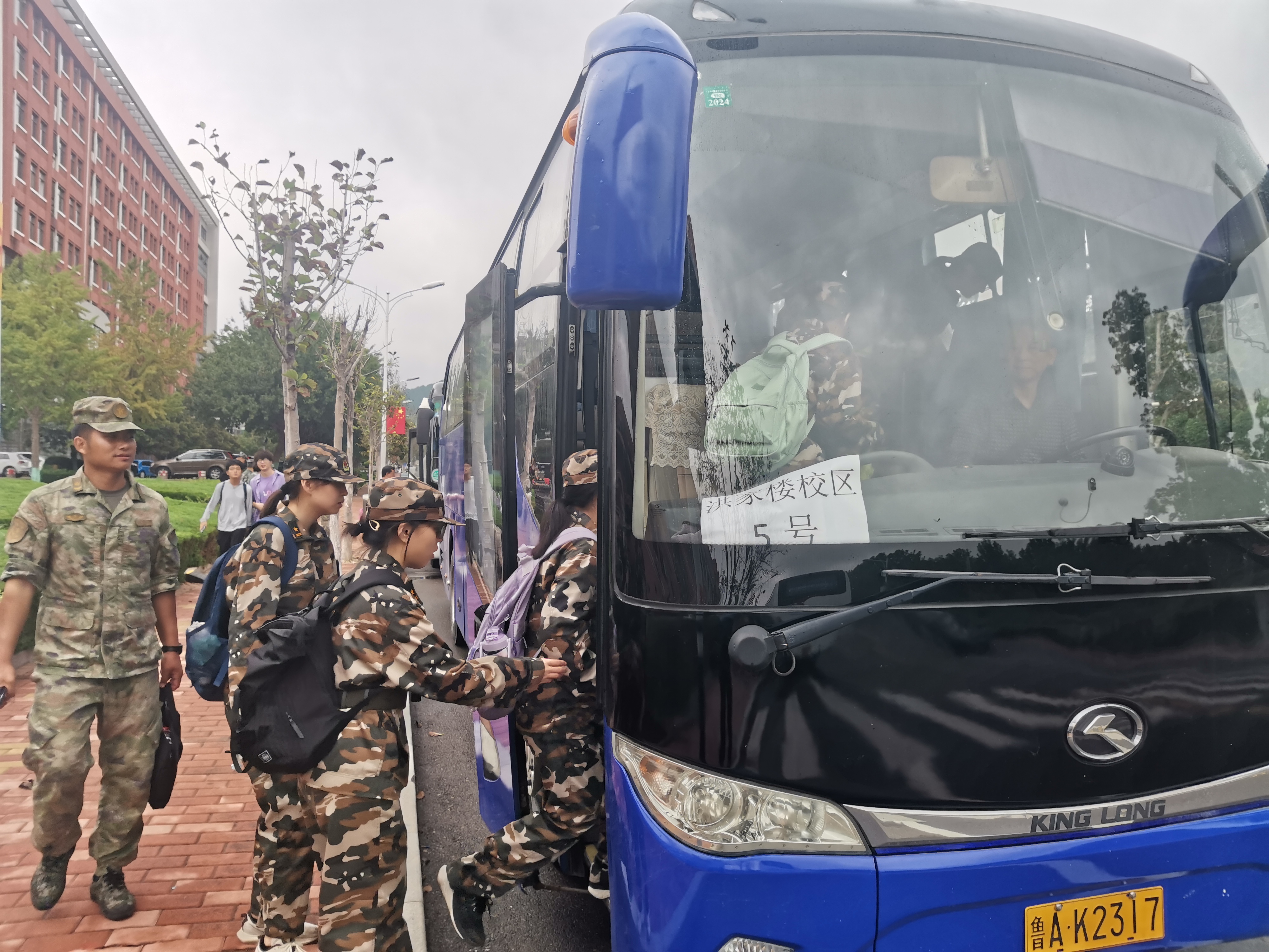 14日凌晨3:30,交通通讯中心工作人员和保障车辆在中心校区、洪家楼校区、软件园校区集结,等待运送学生。凌晨4:00,新生们迈着整齐的步伐依次乘车。保障车辆闪烁着车灯划破了苍茫的夜色,带着4000多名新生驶向兴隆山校区。