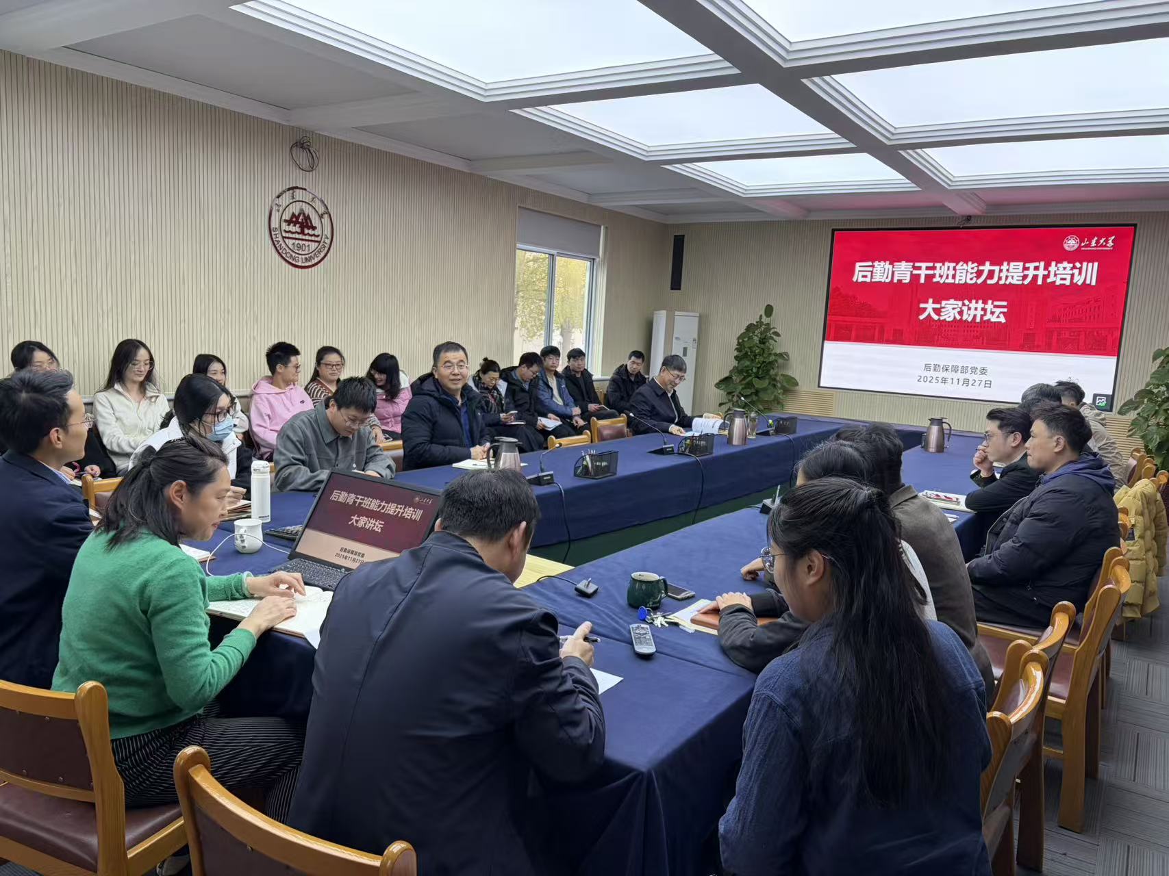 11月27日下午,后勤保障部举办青干班综合能力提升“大家讲坛”专题培训。后勤保障部党委副书记梁勇作专题辅导报告、讲党课,学生公寓管理服务中心主任曹源主持培训。梁勇以“提高政治站位,强化监督协同”为题...